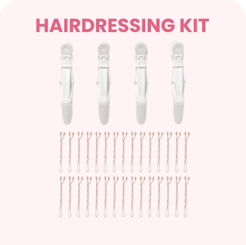 This hair clip set includes 4 white alligator clips and 30 rose gold hairpins.